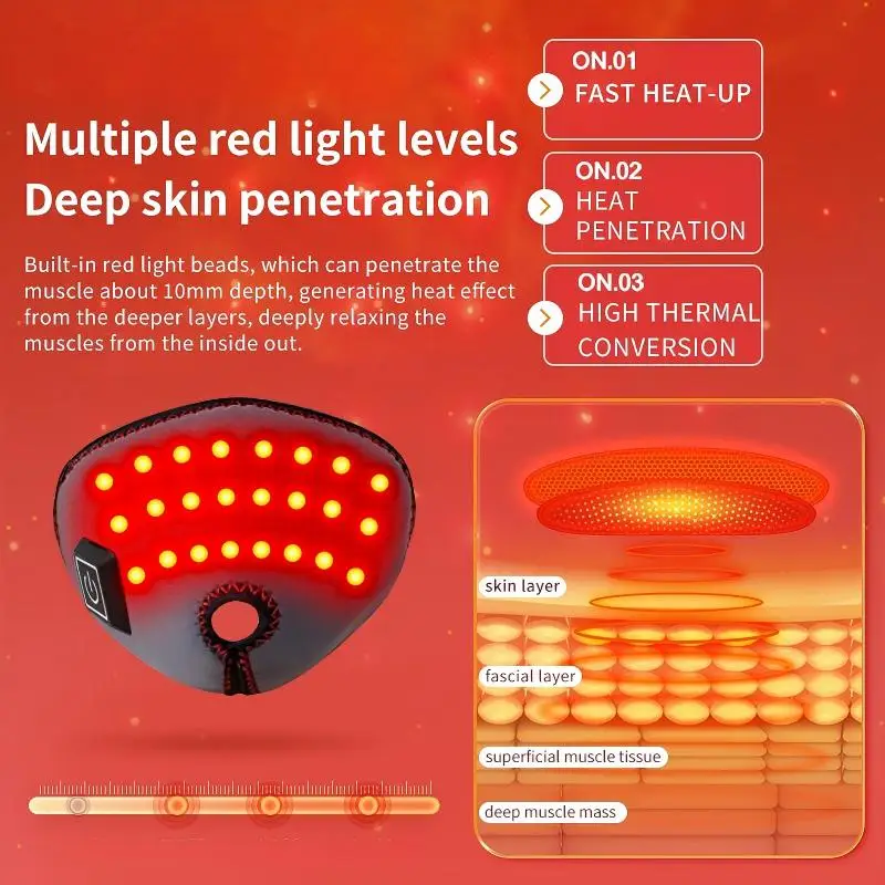 وظيفة التسخين: توفر حرارة لطيفة بسرعة وبشكل متساوٍ عبر أسلاك تسخين من ألياف الكربون مدمجة أو خرز تسخين بالضوء الأحمر. يمكنها تحسين ضعف الدورة الدموية الموضعية الناتج عن الجلوس لفترات طويلة، وبرودة المفاصل في الخريف والشتاء، وتصلب العضلات الناتج عن الإجهاد، مع تخفيف الألم الناتج عن التعب أو البرودة الرطبة أو الالتهاب. مناسبة للصيانة اليومية والعناية بعد الجراحة والاسترخاء أثناء فترات العمل.